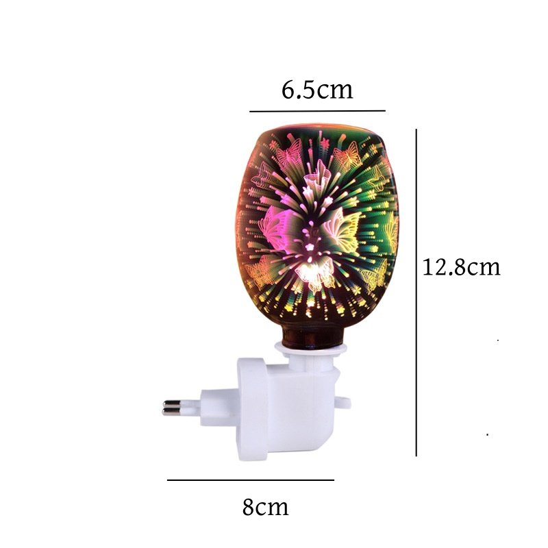 This 3D Butterfly LED Light Electric Glass Pluggable Wall Wax Melting Warmer Lamp measures 12.8 cm in height, 6.5 cm in width, and has a depth of 8 cm, making it a compact and space-efficient addition to any room.