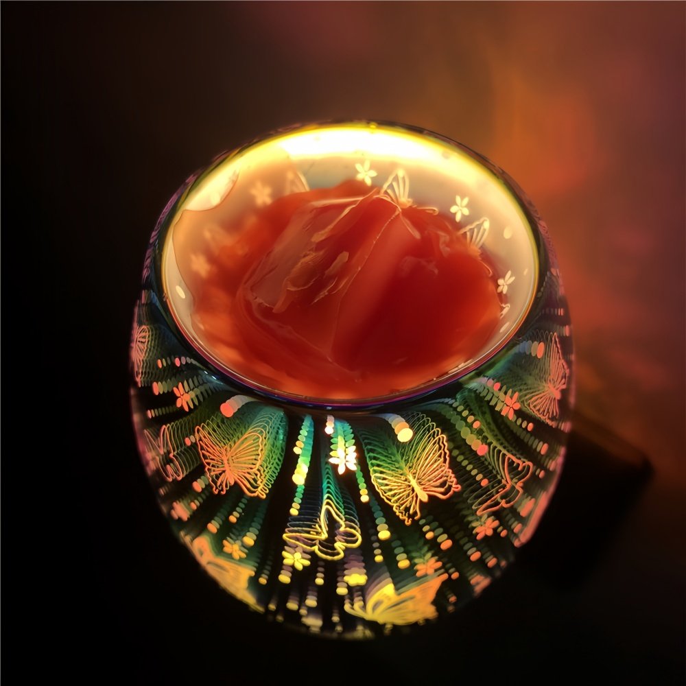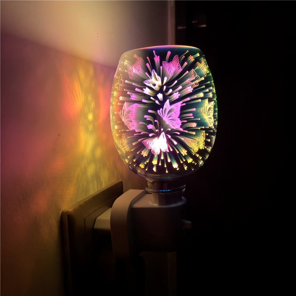 This stunning 3D Butterfly LED Light Electric Glass Pluggable Wall Wax Melting Warmer Lamp features a mesmerizing 3D butterfly design that comes to life with radiant LED lighting, creating a soothing and magical ambiance in any space. Whether you’re looking to melt wax or simply want to enhance the atmosphere, this warmer is designed to provide a soft, calming glow while dispersing your favorite scents. Plug it directly into the wall, making it both space-saving and easy to use in any room. This warmer not only elevates the visual appeal of your space but also offers practical benefits. The electric design ensures safe and consistent heating, making it ideal for continuous use. It is compatible with standard wax melts, offering a clean, flameless alternative to traditional candles. The 3D butterfly pattern reflects the light beautifully, creating captivating reflections on your walls. Whether you want to add a decorative touch to your living room, bedroom, or bathroom, this wax warmer delivers both style and function in one elegant package.
