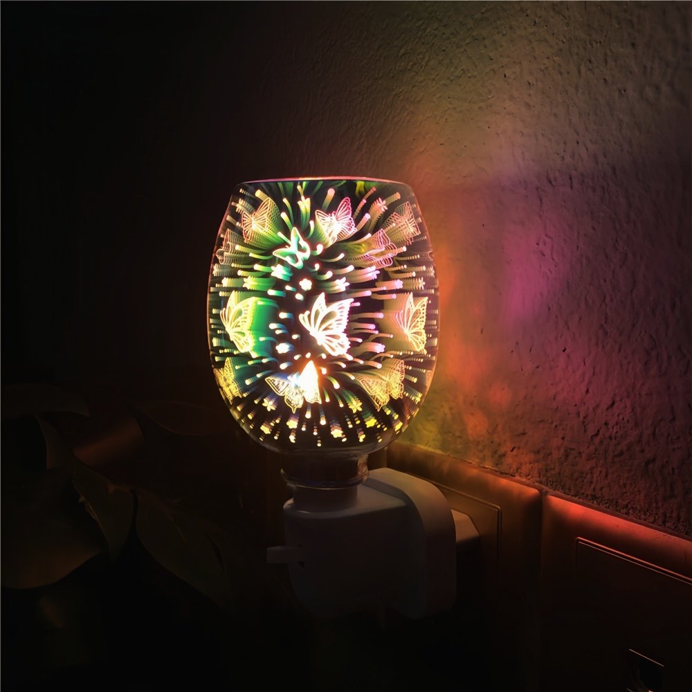 3D Butterfly LED Light Electric Glass Pluggable Wall Candle Wax Melting Warmer Lamp