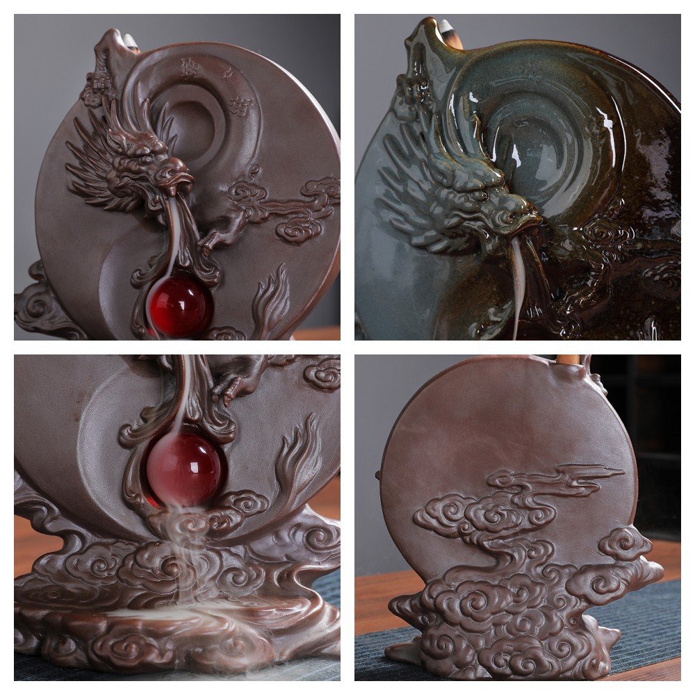 Easy Cleaning and Maintenance, Intricate Dragon Sculpture Design, Premium Purple Clay Material, Smooth Waterfall Smoke Flow, Supports Various Incense Types