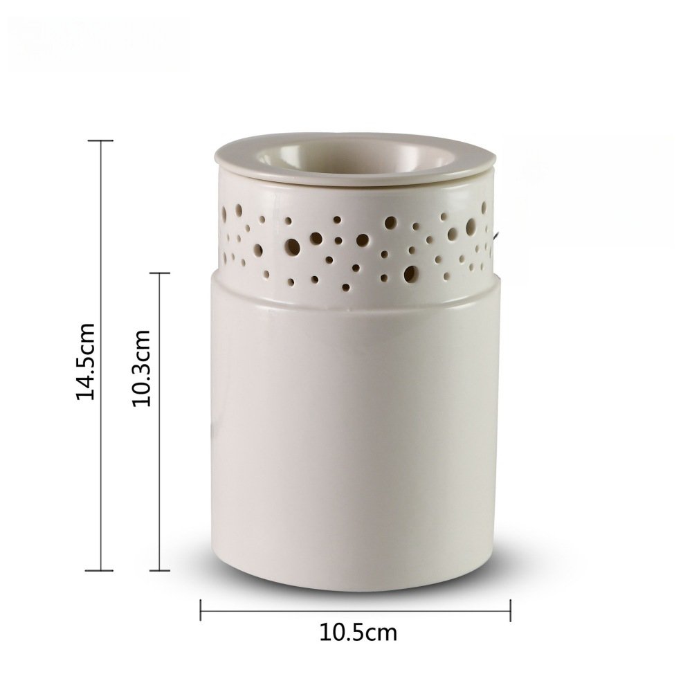 The Best Decorative White Ceramic Night Light Electric Fragrance Wax Candle Melter measures 14.5 cm in height, 10.5 cm in diameter, with a 10.3 cm tall base, offering a compact yet elegant addition to any room.