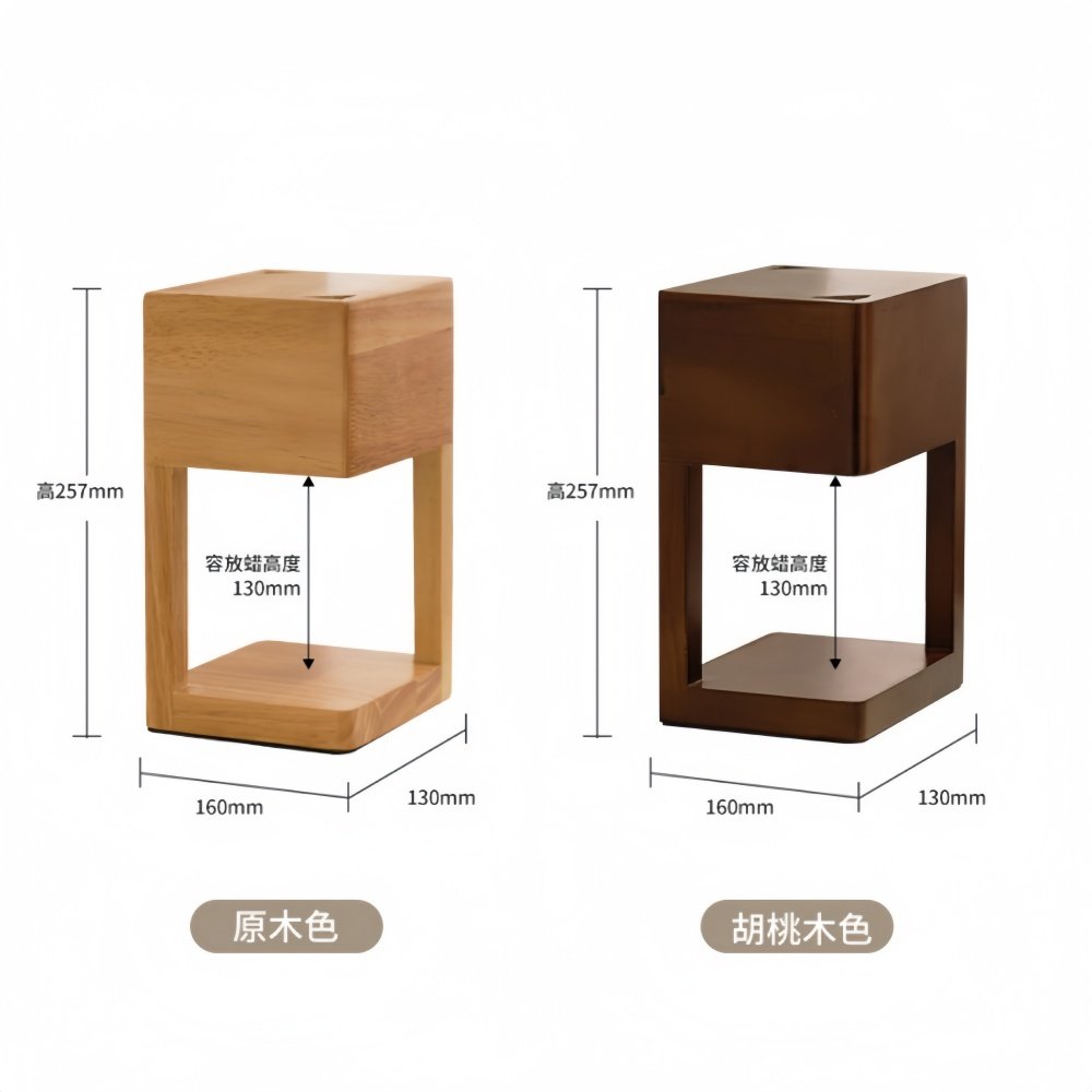 The Best Decorative Wood Dimmable Electric Night Light Candle Warmer Lanterns are available in two styles: Style A in natural wood and Style B in walnut wood. Both styles measure 257 mm in height, with a base of 160 mm by 130 mm, and can accommodate candles up to 130 mm in height.