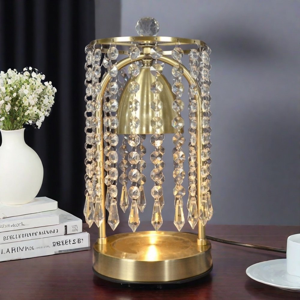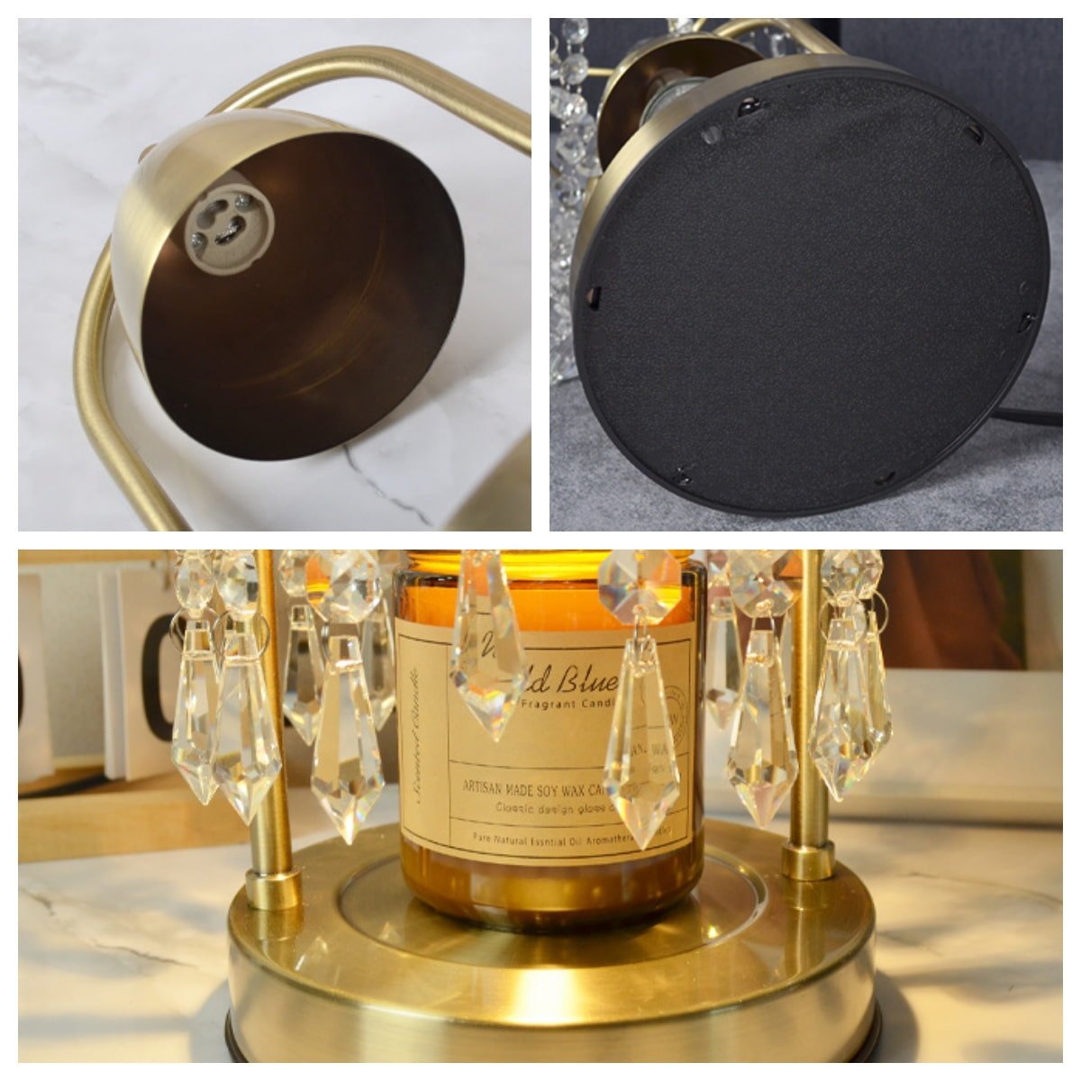 | Features | Adjustable Dimmable Lighting, Built-In Preset Timer, Durable Metal Construction, Elegant Crystal Design, Flameless, Safe Electric Wax Warming, Smokeless, With Light, With Preset Timer |
