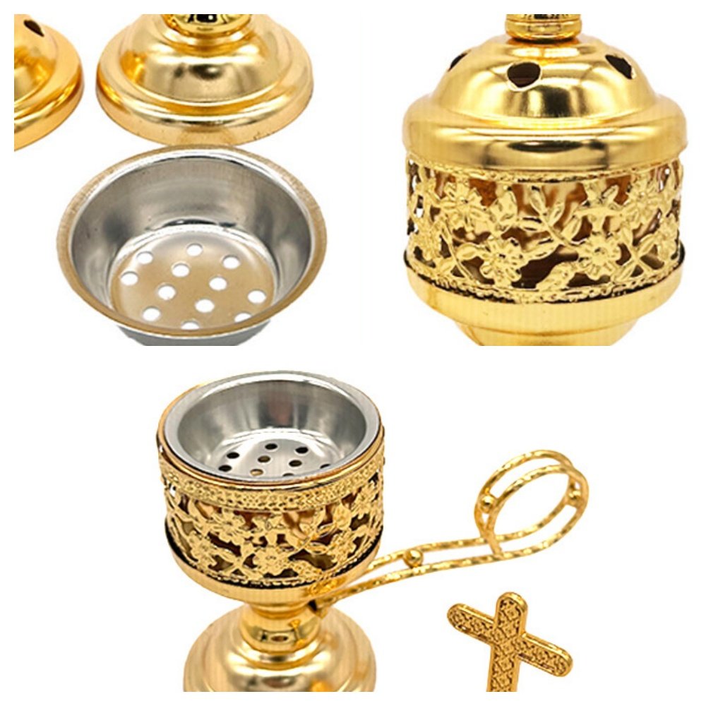 | Features | Dual-Tone Gold and Silver Finish, Easy Access and Cleaning, Efficient Cone Incense Burning, High-Quality Alloy Construction, Roman Orthodox Inspired Design |