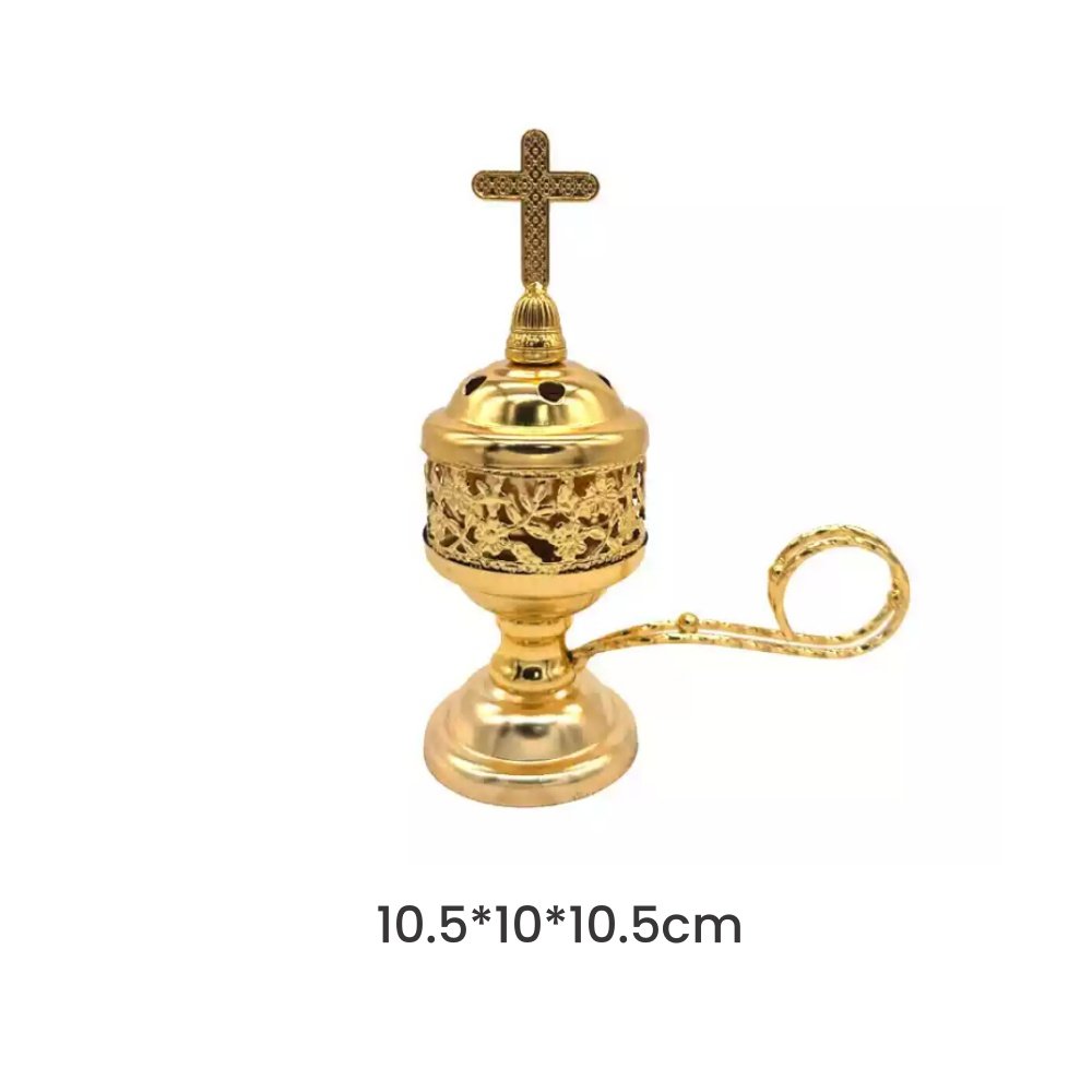 Skillfully crafted from high-quality alloys, this Best Golden and Silver Alloy Roman Orthodox Catholic Church Cone Incense Burner for Sale showcases a magnificent aesthetic. Its striking dual-tone golden and silver finish makes it a majestic addition to any religious or meditative setting. The intricate carvings and traditional design elements draw inspiration from Roman Orthodox aesthetics, ensuring that each piece not only fulfills its functional purpose but also stands out as a true work of art. Ideal for burning cone incense, this burner efficiently disperses soothing aromas that significantly enhance prayer sessions, meditation, and daily worship practices, fostering a tranquil and sacred atmosphere.