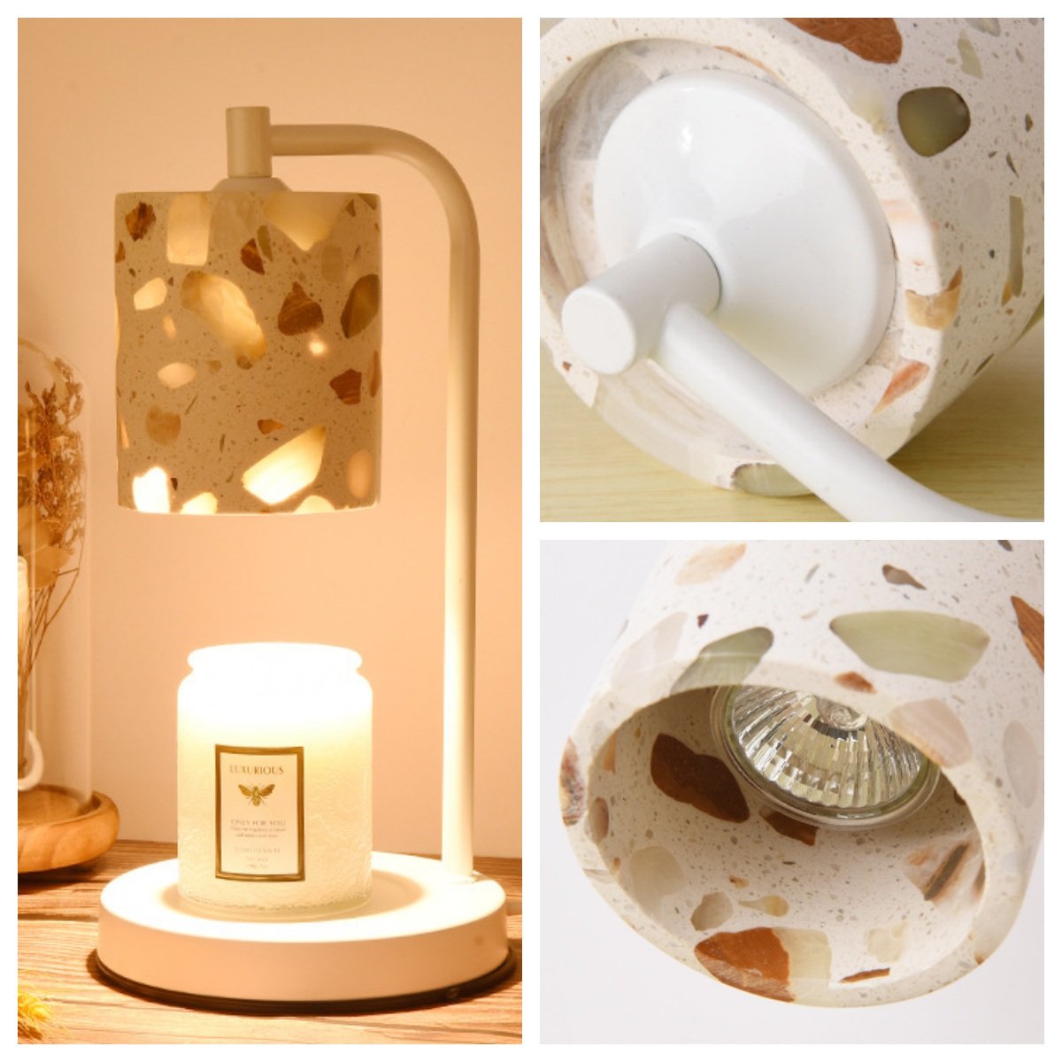 The Best Modern Metal Stone Electric Candle Warming Table Lamp seamlessly blends functionality with aesthetic appeal, providing a striking yet practical addition to any room. This uniquely designed lamp features a contemporary metal structure paired with naturally textured stone, ensuring it stands out as a statement piece while offering practical candle warming capabilities. The inclusion of a timer and dimmer allows for customized ambience and enhanced safety, making it perfect for evenings at home or as a functional decor in public spaces. This lamp not only ensures a clean, smoke-free environment by melting candles without an open flame but also enhances your decor with its minimalist design that complements modern home aesthetics. The integrated dimmer function allows you to adjust the lighting to suit your mood or the occasion, from soft illumination during a relaxing evening to brighter light for reading. The timer function adds a layer of convenience and safety, automatically turning off the lamp to prevent overheating and conserve energy, making it an ideal choice for busy individuals and families alike.