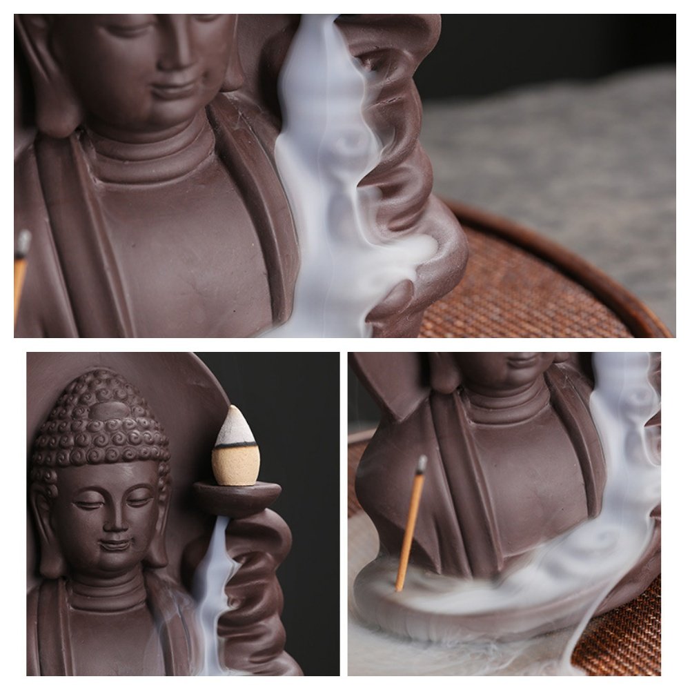 Constructed from high-quality purple clay, the Best Purple Clay Zen Buddha Cascading Incense Backflow Burner showcases a serene Buddha figure in meditation. The unique design allows incense smoke to flow around the figure, mimicking a tranquil waterfall. The unique backflow design allows the smoke to cascade downwards in a smooth, flowing stream, creating a visually stunning effect that enhances any room. This burner is perfect for your meditation space, as a centerpiece in your living room, or even in your workspace to foster a calm, creative environment. The Zen Buddha burner is not just about aesthetics; it also promotes a calming atmosphere, assisting in stress relief and improving concentration during meditation or yoga practices. Its compact size ensures that it fits comfortably on any shelf or table without occupying too much space, making it an ideal choice for small apartments or offices. The use of purple clay offers additional benefits, as it is known for its durability and natural insulation properties, which help in evenly distributing the heat and allowing the incense to smolder slowly and consistently.