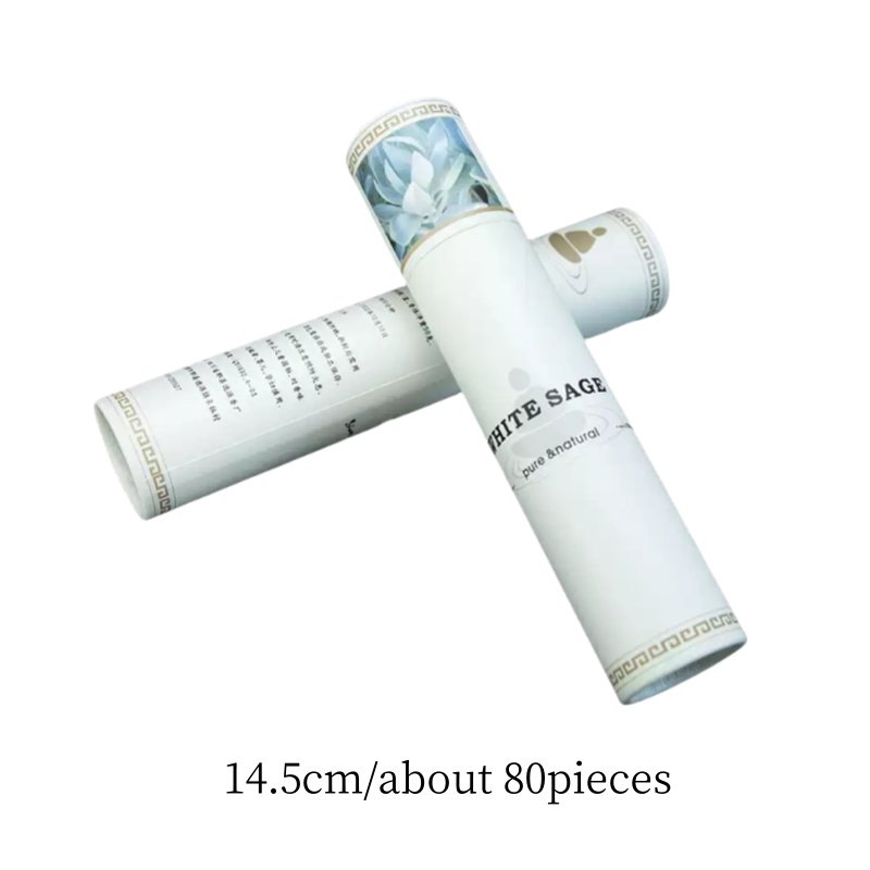 This Best Smelling Natural White Sage Stick of Incense for Aromatherapy comes in a convenient tube containing approximately 80 pieces of white sage incense sticks, each measuring 14.5 cm in length.