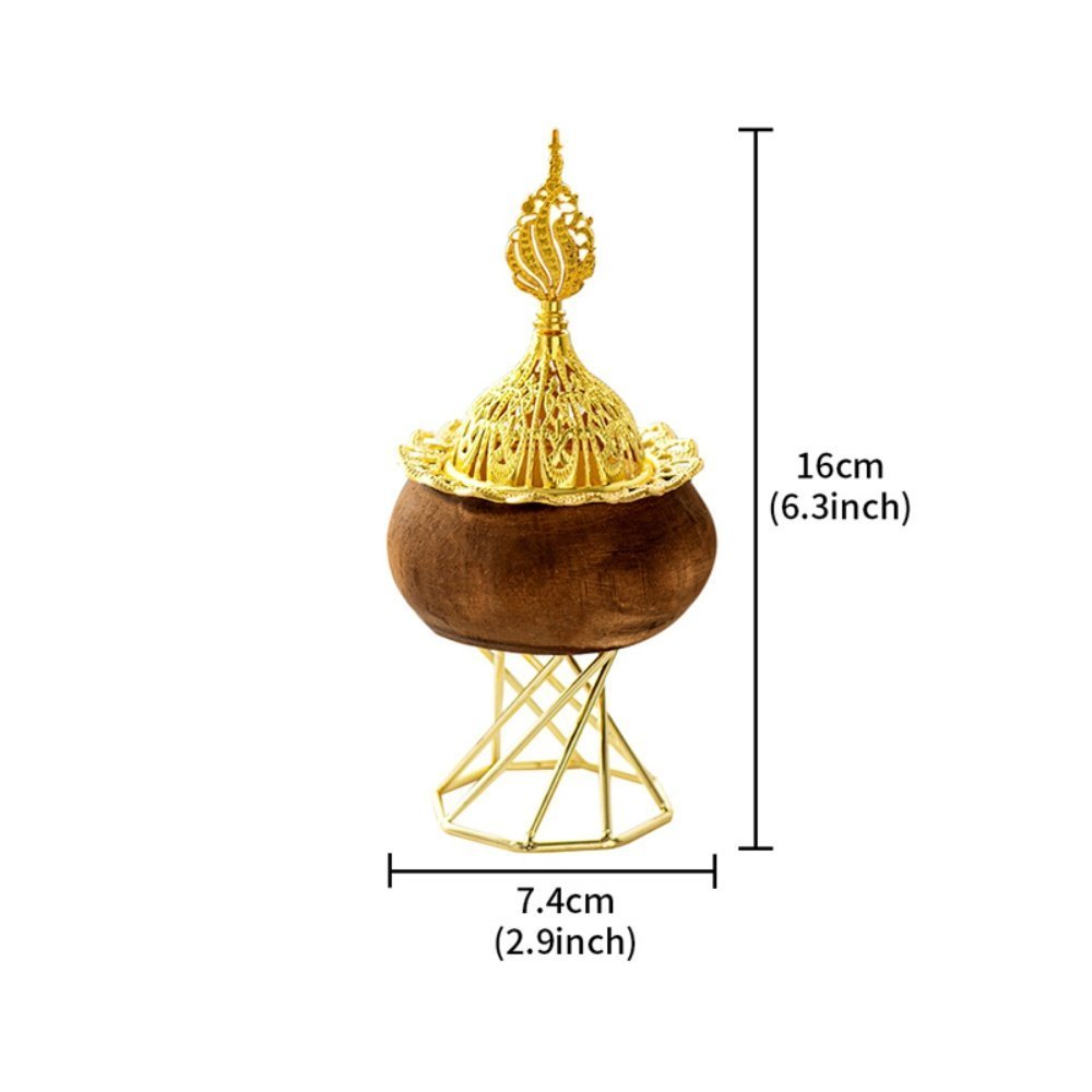 The Best Vintage Hollowed Metal and Wood Cone Incense Burner measures 16 cm in height and has a base diameter of 7.4 cm, providing a compact and elegant option for your incense burning needs.