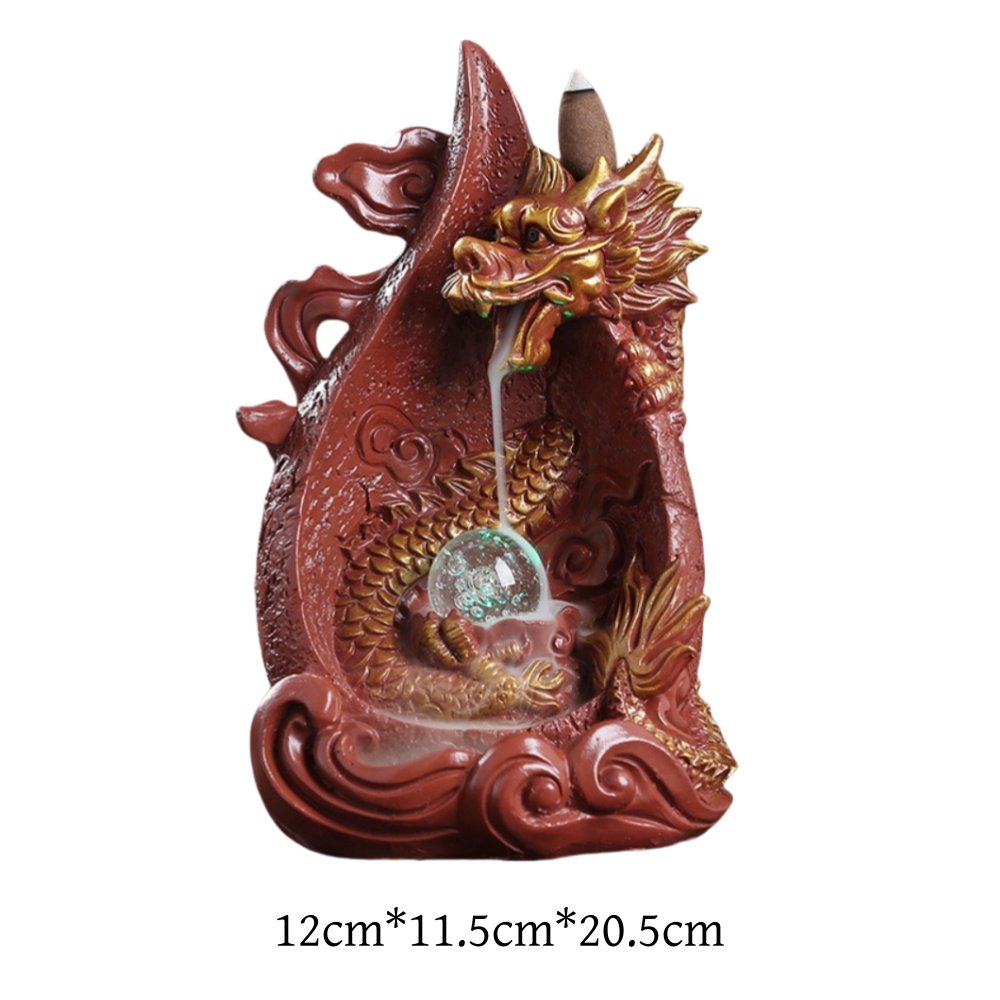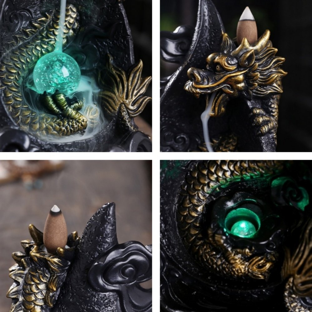 Black and Red Resin Dragon Backflow Incense Burners with LED Light