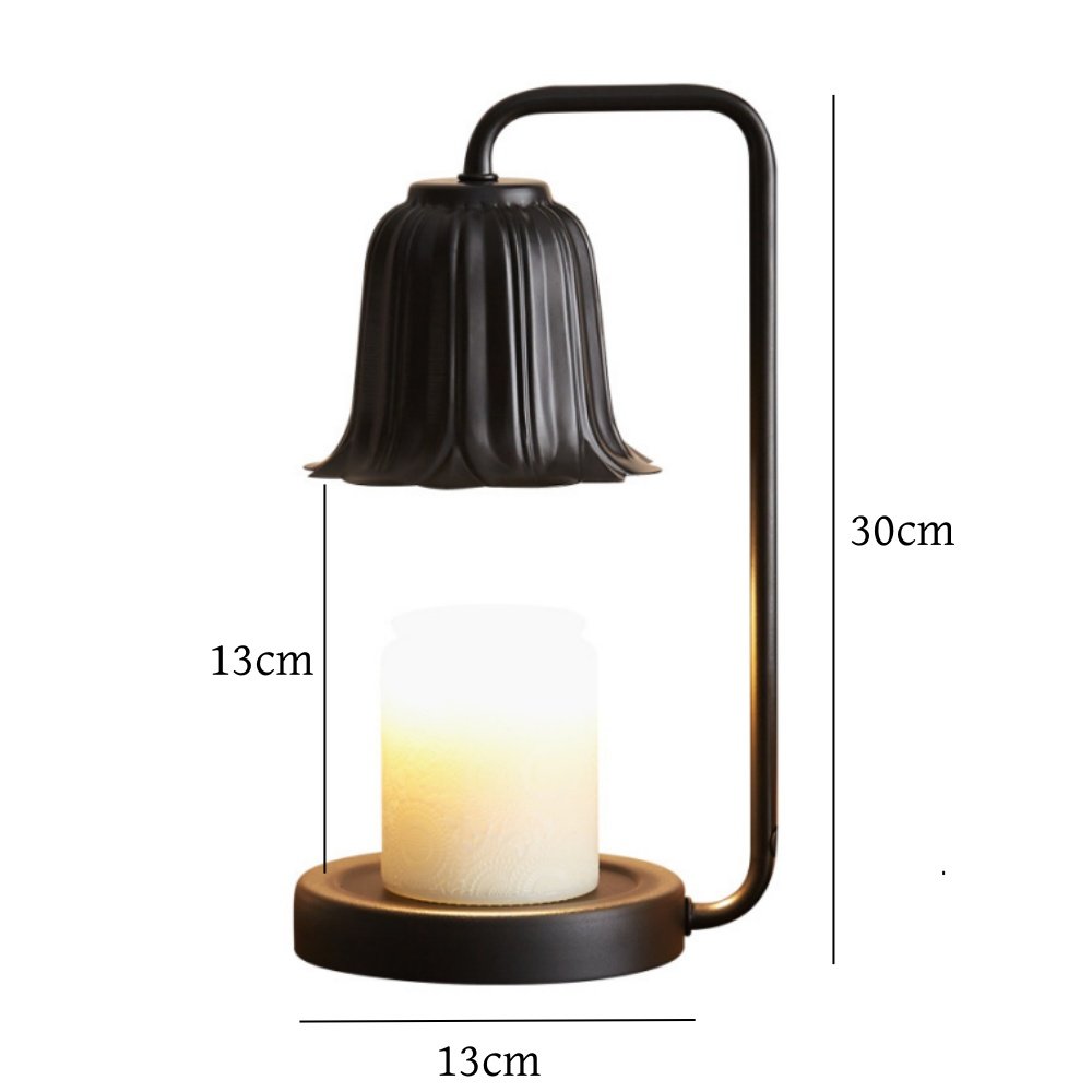 Black Flower Metal Electric Dimmable Candle Heating Desktop Night Lamp with Light Bulb