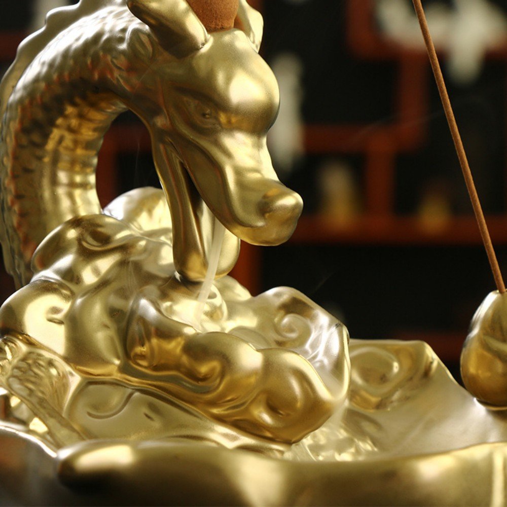 Crafted Using High-Quality Ceramic Material, Detailed Golden Dragon Design, Maintenance is Simple and Convenient, Supports Various Types of Cone Incense, Unique Backflow Smoke Effect
