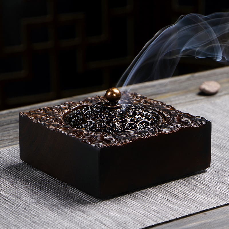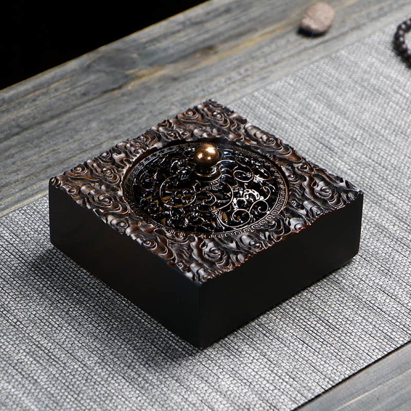 Crafted from premium ebony wood, this exquisite incense holder combines traditional craftsmanship with modern functionality. Each box features unique wood grain patterns, making every piece one-of-a-kind. The intricate antique floral designs are carved using a blend of mechanical precision and hand polishing, ensuring a beautiful and elegant finish. This incense holder is not only a practical item for burning incense but also a classic collectible that enhances the aesthetic appeal of any space.