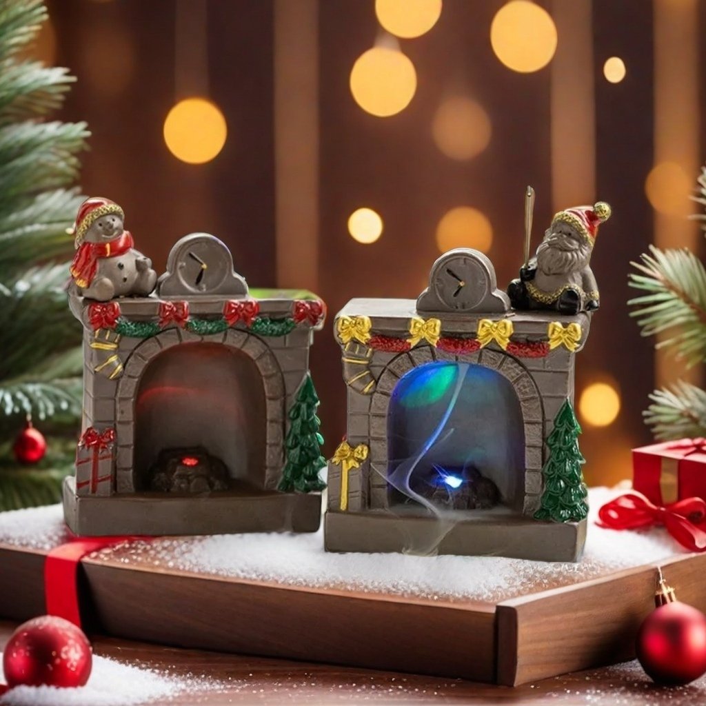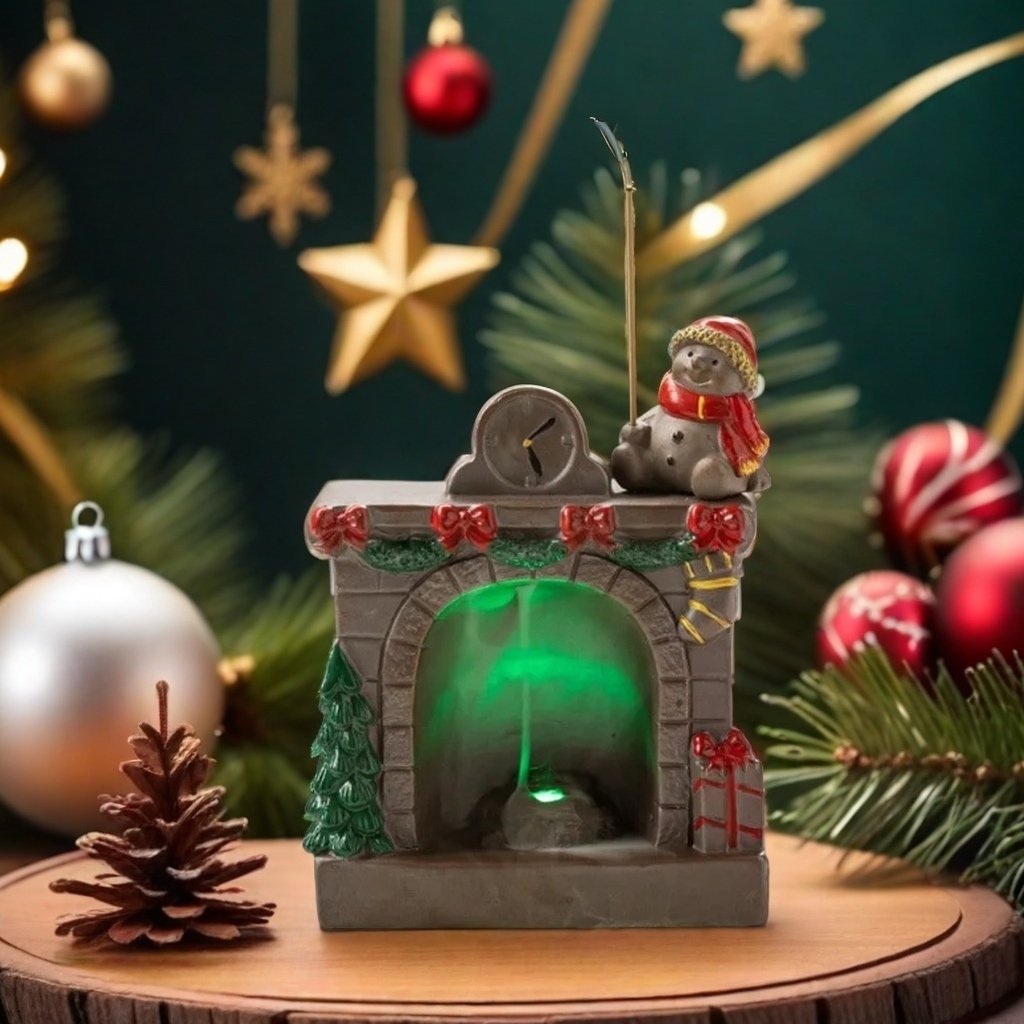 This exquisitely crafted piece, inspired by a traditional Christmas fireplace, brings together the charm of holiday decorations and the serenity of a Zen incense burner. Made from high-quality ceramic and meticulously glazed with a vintage finish, this incense burner features a beautifully detailed Santa Claus or Snowman figure sitting atop a rustic fireplace, creating an enchanting focal point for any room. The built-in colorful LED light adds a dreamy effect, illuminating the fireplace and casting a warm, inviting glow.