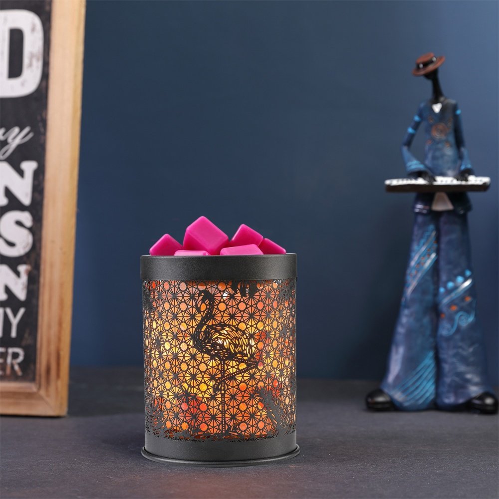 This unique Creative Flamingo Theme Iron Electric Fragrance Candle Wax Melting Warmer features a stylish flamingo design, cut into durable iron with intricate floral patterns that create a warm, glowing light effect when in use. The electric heating system safely melts your favorite wax cubes, offering a long-lasting and consistent fragrance experience. It’s both a functional and decorative item, perfect for adding an artistic statement to any room while ensuring that your living space smells fresh and inviting. This fragrance warmer not only serves as a reliable way to melt wax but also as a beautiful piece of home décor that will catch the eye. Ideal for bedrooms, living rooms, or even offices, it brings a calm and relaxing atmosphere with its ambient glow. Whether you’re looking to create a cozy vibe or gift it to someone special, the Creative Flamingo Theme Iron Electric Warmer is a fantastic choice for combining style and practicality in one item. Safe and energy-efficient, this warmer is perfect for anyone who loves both aesthetic appeal and the ultimate fragrant experience.