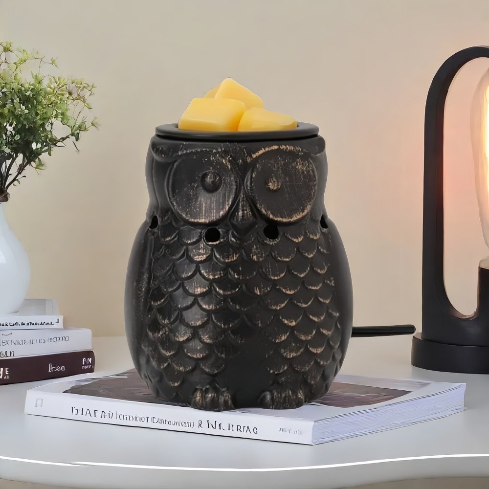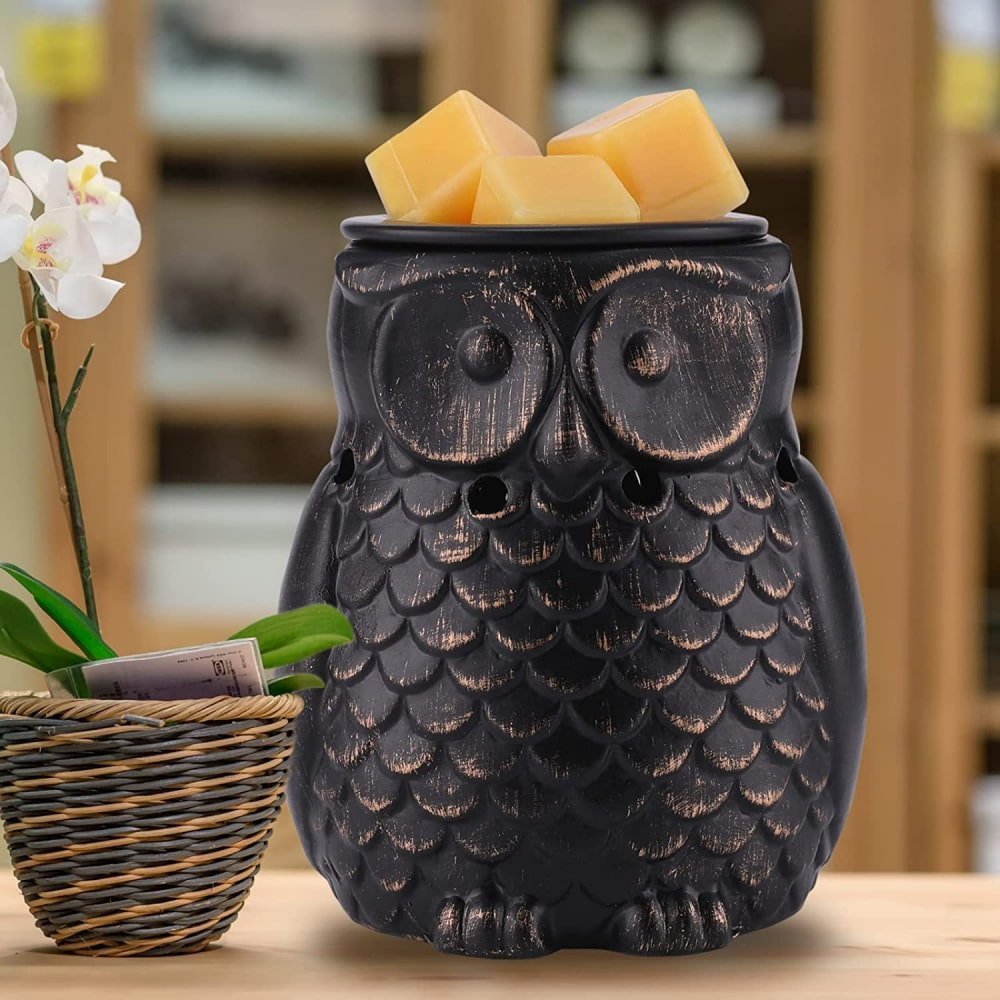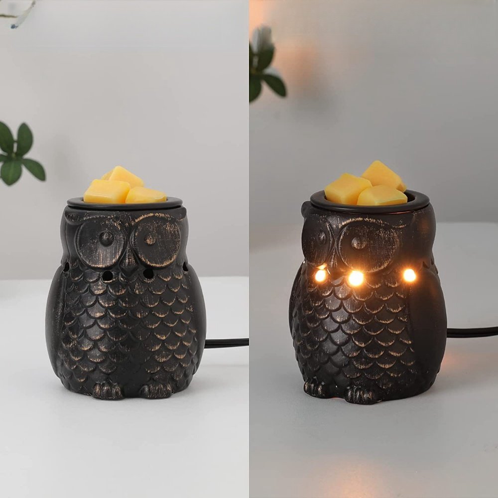 | Features | Charming Owl-Shaped Model, Durable Ceramic Design, Easy-To-Use Top Dish for Melts, Flameless, Rustic, Earthy Finish, Safe and Energy-Efficient Heating, Smokeless, With Light |