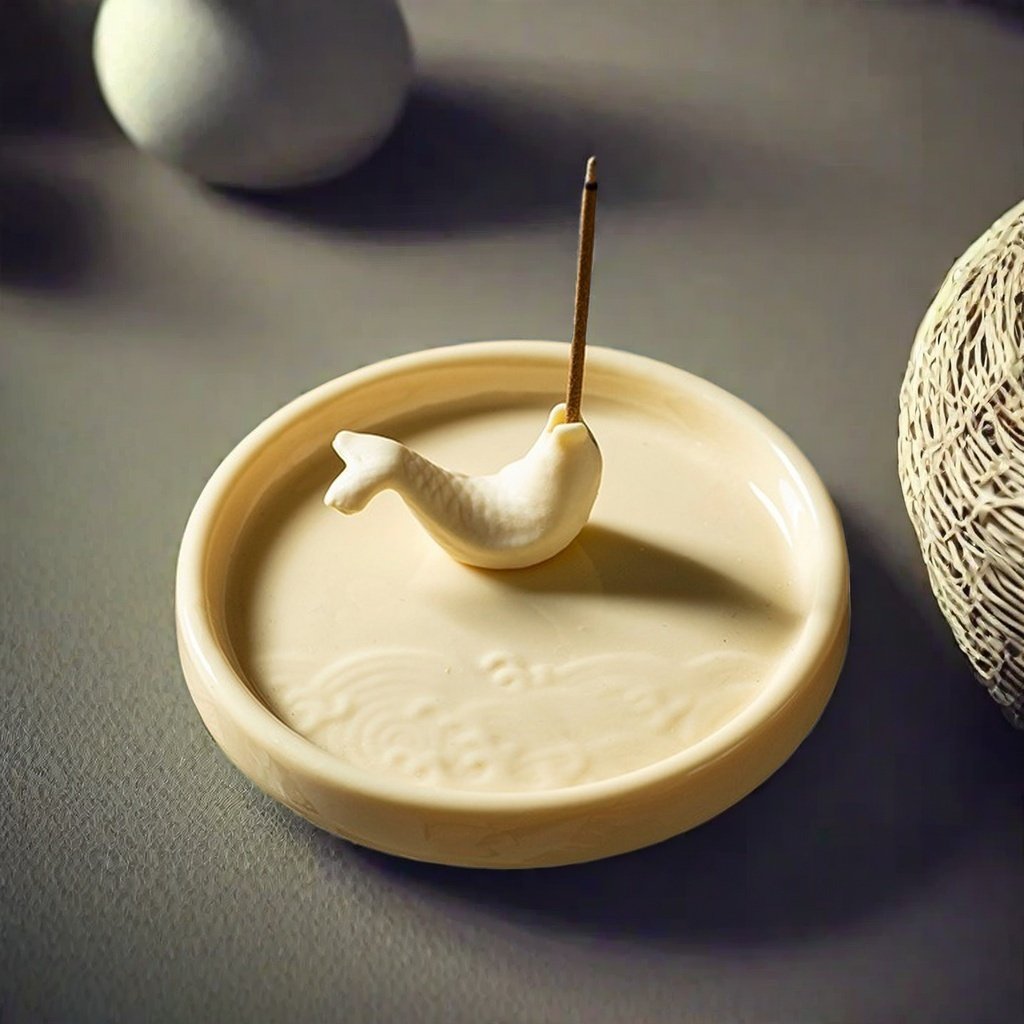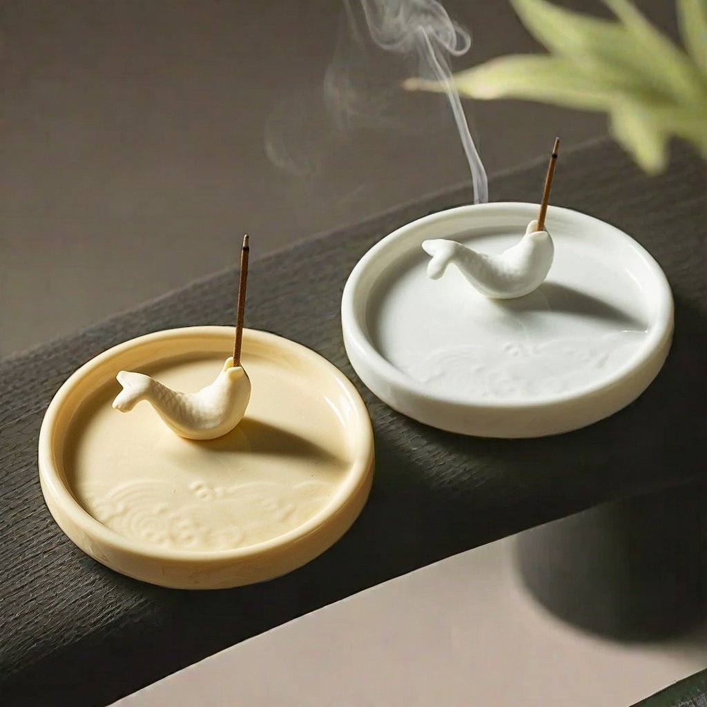Carefully carved and lifelike, this incense burner brings a touch of nature into your home, with every detail meticulously crafted to provide an exquisite experience. The smooth, tactile ceramic finish and the gracefully flowing smoke create a peaceful ambiance, perfect for meditation, relaxation, or simply adding a touch of tranquility to your space. Whether you are starting your day with a calm mind or ending it with a moment of reflection, this incense burner enhances your environment with its serene presence. The delicate white and yellow hues of the koi fish add a soft, elegant touch, making it a beautiful centerpiece for any room.