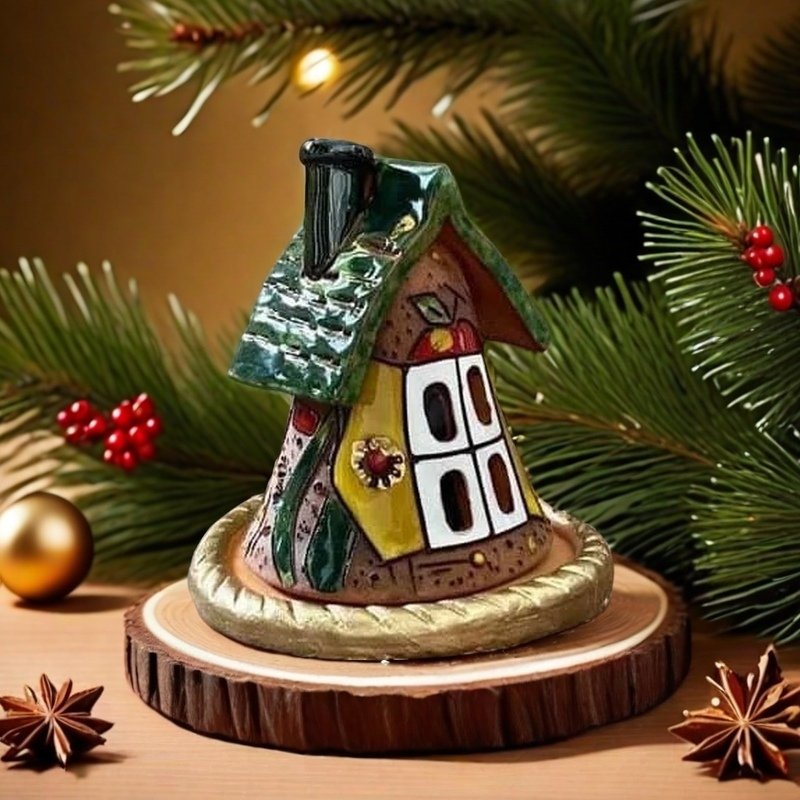 This beautifully crafted incense burner is designed in the shape of a quaint house, meticulously hand-painted to capture the magic of Christmas. The vibrant colors and intricate details make it a standout piece that not only serves as a functional incense burner but also as a delightful holiday decoration. The windows are artistically carved, allowing the fragrant smoke to waft gently through, creating a cozy and inviting atmosphere in any room. This charming design, combined with its practical use, brings the essence of Christmas into your home, making every moment special and festive.