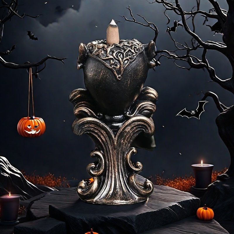 The Horrible Skeleton Halloween Resin Backflow Incense Cone Burner Holder stands out with its exquisite craftsmanship and unique design. Handcrafted to perfection, it captures the intricate details of a skeleton head, making it a perfect addition to your Halloween decorations or for anyone who appreciates gothic art. Its versatility allows it to fit seamlessly into various environments, from tea rooms to living rooms, adding a touch of elegance and sophistication. Watch as the smoke cascades through the skeleton’s features, creating a lifelike and dreamlike display that will fascinate and soothe your senses.