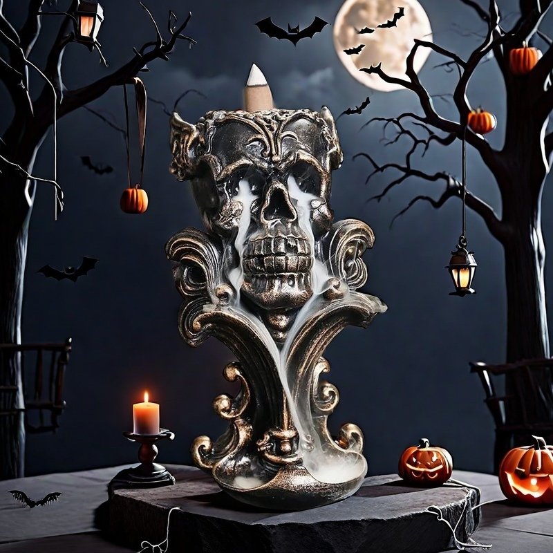 Exquisite Craftsmanship, Hypnotic Smoke Flow, Ideal for Halloween, Intricate Skeleton Design, Premium Quality Resin