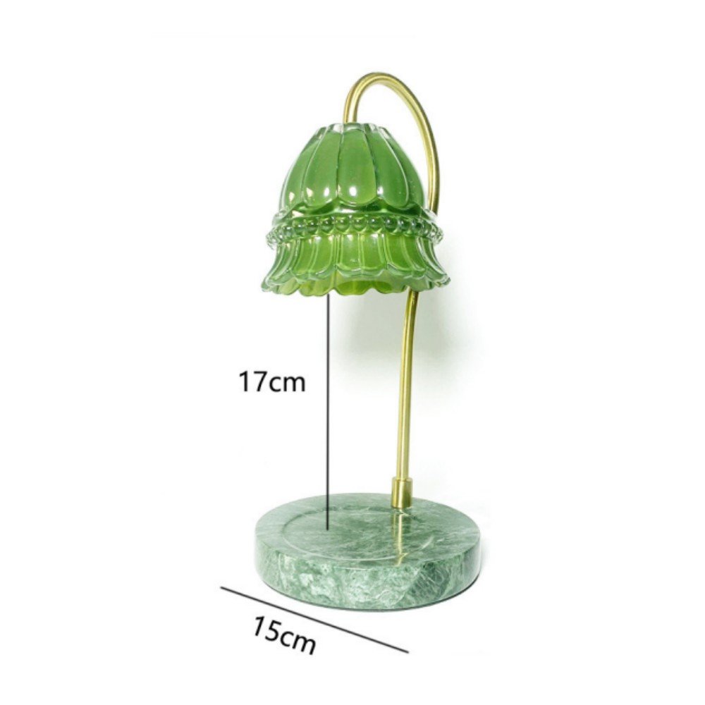 Modern Green Flower Iron Glass Marble Electric Dimmable Candle Warming Lamp with Timer