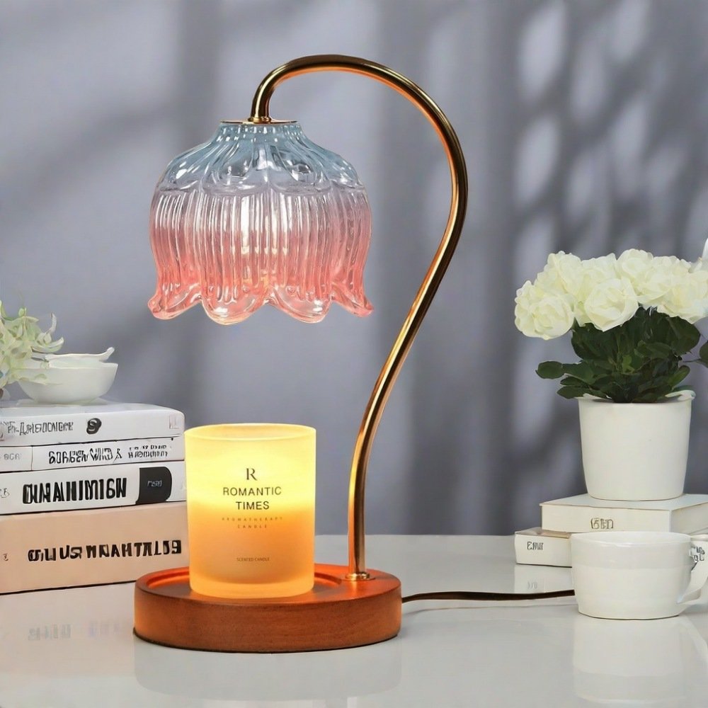 Adjustable Metal Arm, Built-In Timer Function, Durable Construction, Efficient Wax Melting, Flameless, Pink Gradient Glass Shade, Smokeless, With Light, With Preset Timer