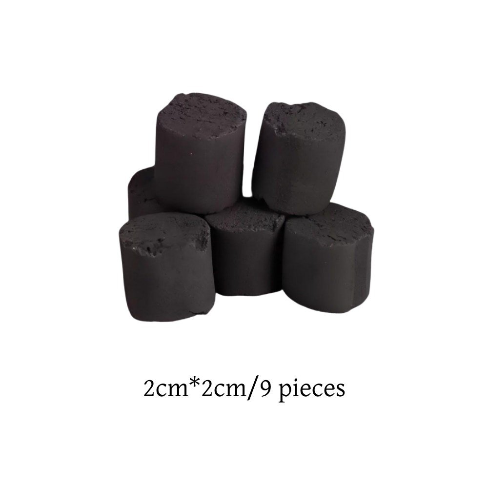 This Premium Natural Unscented Charcoal Burning Incense Box contains 9 pieces, each uniformly sized at 2 cm by 2 cm, designed for consistent and efficient burning.