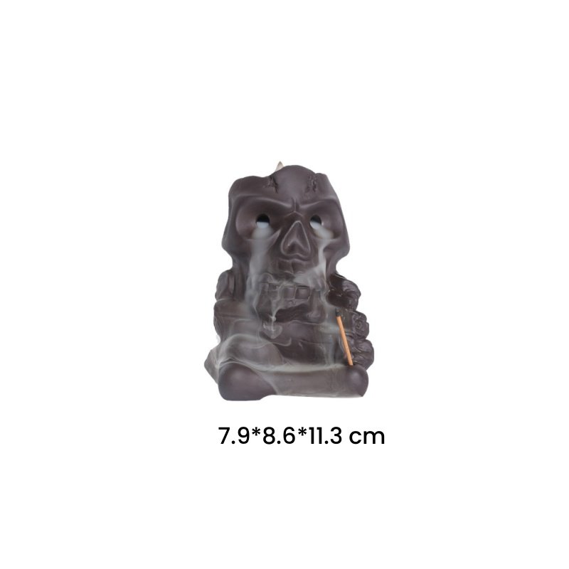 This Purple Clay Skull Waterfall Backflow Cone Incense Burner for Halloween Holiday has about 4.45 inches high ,a width of approximately 3.39 inches and a length of 3.11 inches , providing a substantial presence suitable for any space.