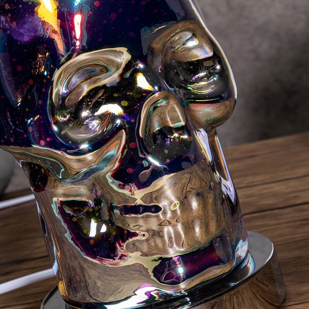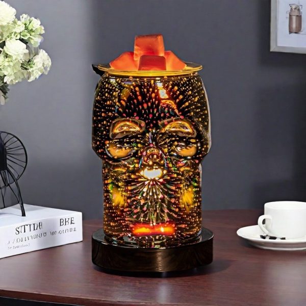 The Unique Firework Skull Shaped LED Light Electric Glass Wax Candle Melting Warmer offers a bold and captivating design, perfect for those who want to add an edgy and artistic touch to their home decor. Its intricate skull shape is enhanced with mesmerizing firework patterns created by the LED light, providing a vibrant, multicolored display when illuminated. This electric warmer is designed to melt wax effortlessly, filling your room with your favorite scents while also serving as a striking visual centerpiece. Whether for a modern, gothic, or eclectic style, this warmer brings both functionality and statement-making decor into one unique product. Featuring safe electric operation, this wax warmer is a convenient and stylish alternative to traditional candles. Simply plug it in, add your wax melts or essential oils, and watch the fireworks effect light up the room while releasing long-lasting fragrances. The even heat distribution ensures a consistent melt, allowing scents to disperse effectively throughout your space. This piece is ideal for adding a touch of mystery to living rooms, bedrooms, or office spaces while providing a conversation-starting feature that enhances any decor.