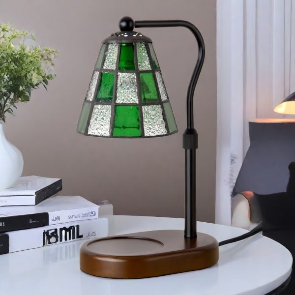 This unique Vintage Green Glass Iron Wood Electric Dimmable Candle Melting Wax Table Lamp for Living Room combines the rustic charm of wood with the sophisticated allure of iron. The vibrant touch of green glass creates a striking visual interest in any interior setting. The lamp is equipped with a dimmable feature that allows you to adjust the lighting to suit your mood or the occasion, making it perfect for a cozy night in or when you need just a bit more light for reading. Additionally, it serves as a candle melting lamp, delicately warming your favorite scented wax to fill the room with relaxing aromas without the need for an open flame. The table lamp not only serves as a source of light but also as a decorative piece that compliments any décor style from vintage to modern. Its sturdy base ensures stability while its compact design makes it an ideal fit for various spaces, from side tables to mantels. The integrated dimming control offers versatility, allowing you to create the perfect ambiance while the green glass shade casts a soothing, soft light that transforms any room into a tranquil retreat. Whether you’re looking to add a touch of vintage flair to your home or searching for a functional yet stylish lighting solution, this candle melting wax lamp is designed to meet your needs and exceed your expectations.
